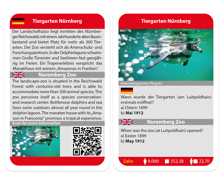 Wer mehr zu den im Spiel beschriebenen Themen erfahren möchte, scannt mit seinem Handy einfach einen qr code ein, und wird so auf weiterführende Informationen zum jeweiligen Thema verlinkt. Damit wird gleichzeitig die Brücke vom analogen Kartenspiel zum Digitalen geschlagen.